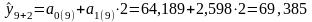 Построим прогноз для модели Брауна на следующие 2 недели. Параметры модели, полученные для последнего уровня временного ряда (т. е. для t=n=9), используются для построения прогноза спроса по формуле: