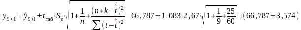 С вероятностью 70 % значение спроса на кредитные ресурсы будет находиться в интервале от 63,213 до 70,361 млн. руб.