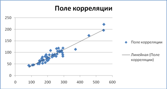 В декартовой системе координат ХОУ на поле корреляции строим и график линии регрессии по найденному уравнению.
