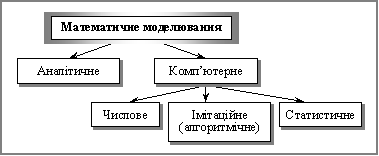 Класифікація видів математичних моделей може проводитися й за такими ознаками: аналітичне та комп’ютерне моделювання (рис. 1).