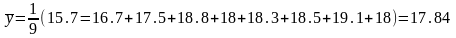 | y | 15.7 | 16.7 | 17.5 | 18.8 | 18 | 18.3 | 18.5 | 19.1 | 18 |