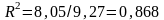 Используя полученные в предыдущем пункте величины TSS и ESS, рассчитаем коэффициент детерминации