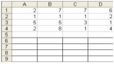 Переносимо данні вартості перевезень одиниці продукції з умови у MS Exel. Виділяємо область даних для знаходження плану перевезень: