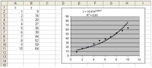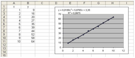 Додаємо до графіка лінію тренда різних типів та записуємо величину достовірності: