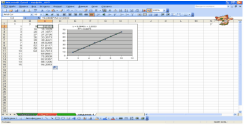 Проаналізувавши величини достовірності, визначаємо що найбільша точність при лінійній та поліноміальній лінії тренда (R2 =0,9975). Так як функція при лінійній лінії тренду легша для сприймання та підрахунку ніж при поліноміальній, то використовувати будемо саме її: