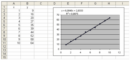 Відповідь: лінійна модель регресивного аналізу: y = 6,0848х+2,9333.
