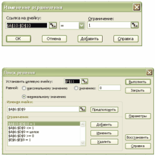 Викликаємо “Поиск решений” та заносимо усі обмеження: