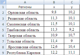 1. Парная линейная регрессия и корреляция