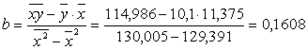 Решив систему, получим: a = 8,2717; b = 0,1607.