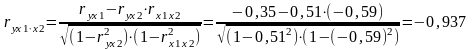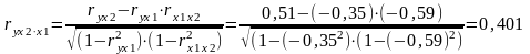 Частные коэффициенты корреляции характеризуют тесноту связи между результатом и соответствующим фактором при устранении влияния других факторов, включенных в модель. Формула коэффициента частной корреляции, выраженная через показатель детерминации, для х1 принимает вид: