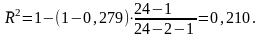 Скорректированный индекс множественной детерминации содержит поправку на число степеней свободы и рассчитывается по формуле: