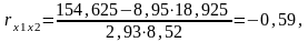 Таким образом, при закреплении фактора х2 на постоянном уровне (элиминировании) корреляция у и х1 равна -0,937, то есть связь обратная сильная. При закреплении фактора х1 на постоянном уровне корреляция у и х2 равна 0,401, то есть связь прямая слабая.
