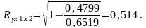 При линейной зависимости совокупный коэффициент корреляции можно также определить через матрицу парных коэффициентов корреляции: