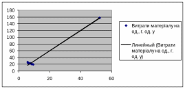Тобто зв'язок між випуском продукції та витратами матеріалів на одиницю дуже щільний.