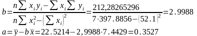 Коефіцієнти а і b знаходять із системи рівнянь, що випливає з формули.