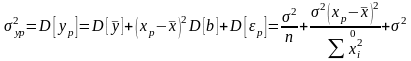 Як і раніше, замість точного значення дисперсії помилок σ2 (яке невідомо в рамках вибіркового спостереження) варто підставити її оцінку, тоді стандартна помилка прогнозу показника стає рівною