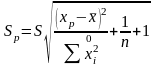 Ця середньоквадратична помилка (чи стандартна помилка), як і випливало очікувати, пропорційна стандартній помилці регресії S і росте зі збільшенням різниці між прогнозним і середнім значеннями фактора