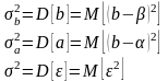 Ми будемо оцінювати дисперсії і середньоквадратичні помилки (СКП) для оцінок параметрів моделі і величини ε:
