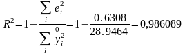 F = R2*(n - 2)/(1 – R2) = 0,986*(5)/(1 – 0,986) = 352,14.