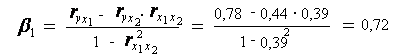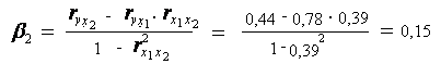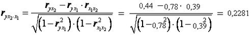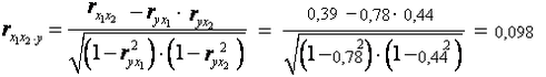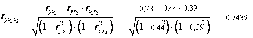 Если сравнить значения коэффициентов парной и частной корреляции, то приходим к выводу, что из-за слабой межфакторной связи (rx1x2=0,39) коэффициенты парной и частной корреляции отличаются значительно.