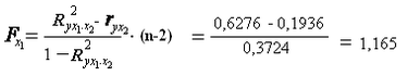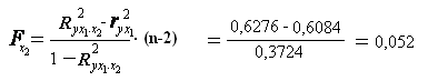 Низкое значение Fх2 (меньше 1) свидетельствует о статистической незначимости прироста r2yx1 за счет включения в модель фактора х2 после фактора х1. следовательно, подтверждается нулевая гипотеза H0 о нецелесообразности включения в модель фактора х2.