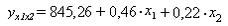 Линейное уравнение множественной регрессии у от х1 и х2 имеет вид: