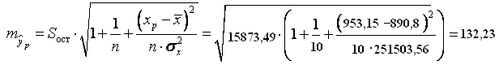 Найдем доверительный интервал прогноза. Ошибка прогноза