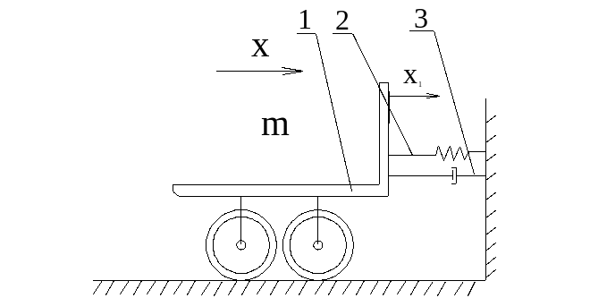 На данную систему (рисунок 1) действуют силы: сила инерции движущегося вагона; сила демпфирования (или сила вязкого трения), пропорциональная скорости движения вагона; а также восстанавливающая сила упругого элемента-демпфера.