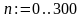 После проведения решений выведены лишь шестнадцать рассчитанных значений. В общем же получено 300 значений, что соответствую числу интервалов.