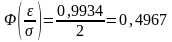 Значит, по таблице значений функции Лапласа находим, что