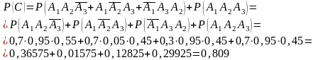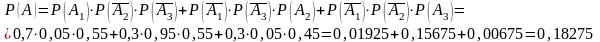 Р(А1)=0,7 Р(А2)=0,95 Р(А3)=0,45