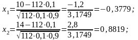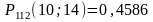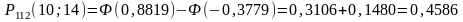 Вероятность того, что из n=112 испытаний, событие А - появится от m1=10 до m2=14, вычислим по формуле: