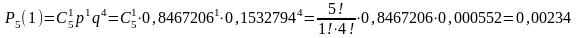 Для нахождения вероятности тог, что из 5 изделий, взятых на проверку, только одно будет удовлетворять стандарту, воспользуемся формулой Бернулли.