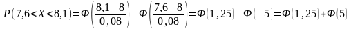 Значит, с вероятностью 0,9934 следует ожидать, что контролируемый размер детали будет заключен в границах от 7,7824 см до 8,2176 см.