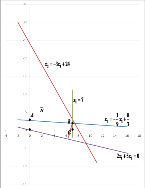 Построим прямые, ограничивающие многоугольник допустимых решений: