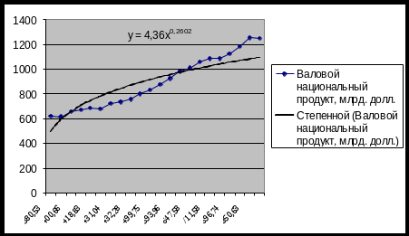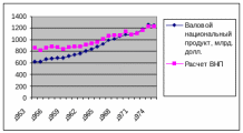 2. С помощью пакета Excel найдем расчетные значения ВНП: