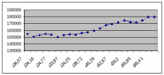 Как можно видеть из табличных значений и графического представления, расчетные значения, по крайней мере, повторяют тенденцию фактических значений с ошибкой порядка 7%.