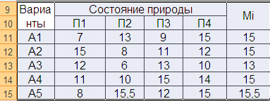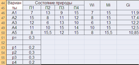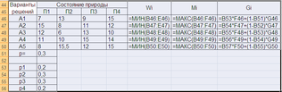 По критерию Гурвица предпочитается то решение, при котором G = maxi { minihij + (1- p) maxj hij } = maxi Gi.