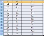 Имеются данные испытаний нескольких величин по результатам обследования десяти статистически однородных филиалов фирмы, приведенные в таблице. х1- фондовооруженность, х2 – энерговооруженность, у – производительность труда.