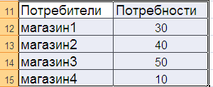 1.тарифы перевозок единицы груза от каждого поставщика каждому потребителю