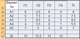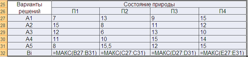 Определяем максимум ожидаемого математического выигрыша. Он равен 12,85, что соответствует четвертому решению, которое, следовательно, и является оптимальным.