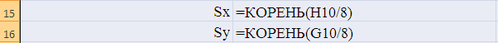 Для вычисления среднеквадратических ошибок Sy, Sx имеем формулу: