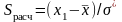 – вычисляю значение статистики Sрасч по найденным характеристикам для наибольшего значения, которое нужно подставить в формулу вместо x1 и проверить гипотезу H0 : наибольшее (последнее в столбце) значение – выброс;
