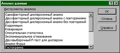 Сервис – Анализ данных – Гистограмма (рис.1);