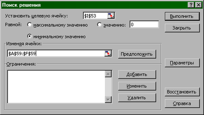 Рис.11. Ввод информации для Поиска решения.