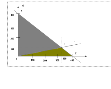 В середине треугольника ОАВ любое другое соединение, кроме х1 = 320; х2 = 80, обеспечивает меньшую суммарную прибыль.
