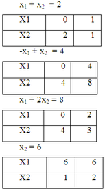 -х1 + х2 = 4 (2)
