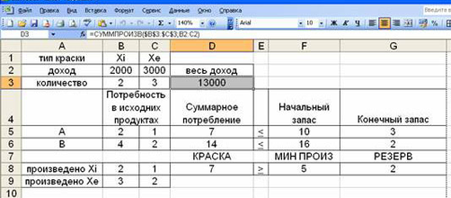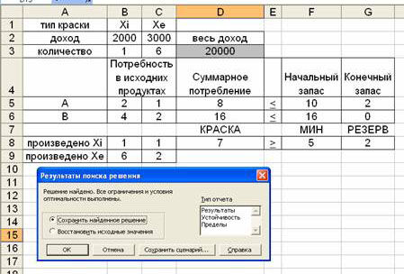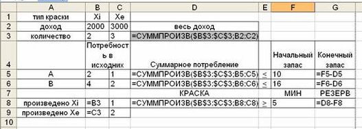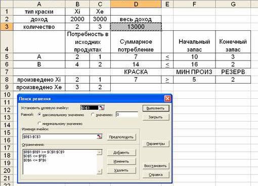 Хi — суточный объем производства краски I и Хе — суточный объем производства краски Е.