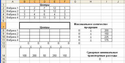 где аi — объем производства на i-й фабрике, вi — спрос вj-м центре распределения.