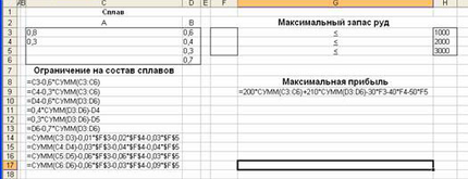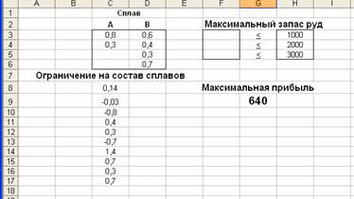 при ограничениях на состав сплавов (на основании данных из табл.):